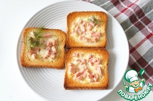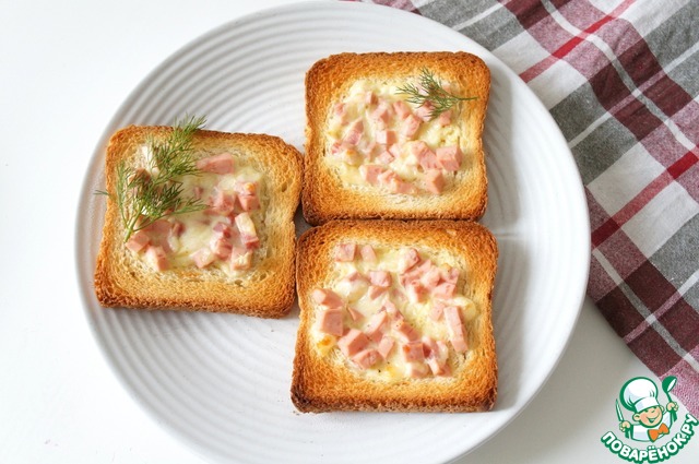 Хрустящие бутерброды на завтрак или для перекуса днём. Привычная начинка из колбасы и сыра станет сочнее благодаря йогурту.