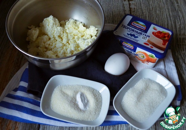 Приготовить продукты. Творог у меня деревенский, довольно жирный и сухой.