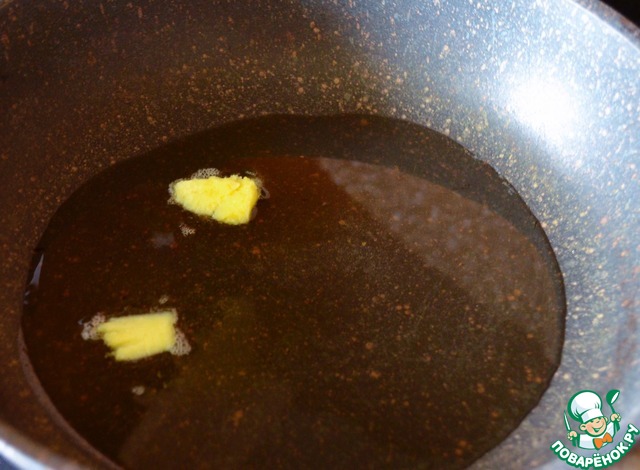 Разогреть сковороду с 1 ст. л. растительного масла, добавить топлёное.