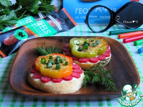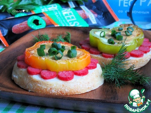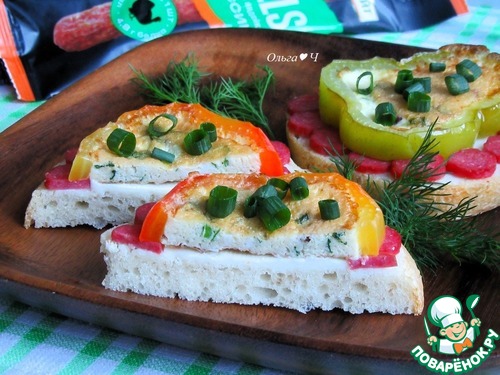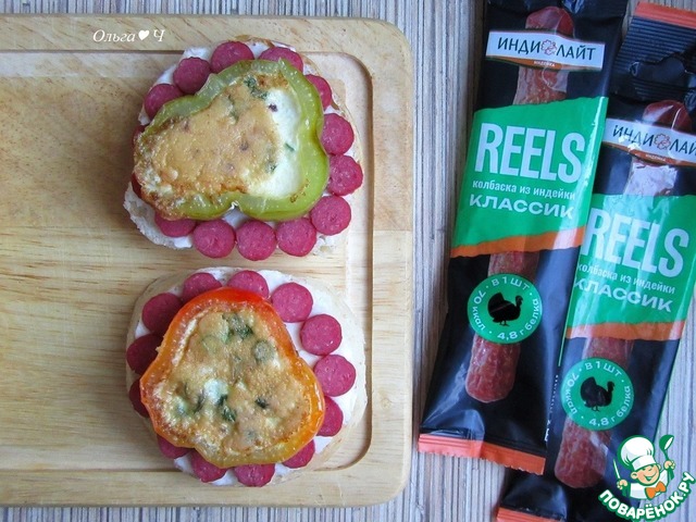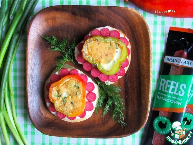 Сытные бутерброды с колбасками из индейки ТМ Индилайт и омлетом с зеленым луком в сладком перце. Отличный перекус для детей и взрослых, который можно подать и на праздничный стол в качестве закуски. Бутерброды хороши как в горячем, так и в холодном виде. Попробуйте!