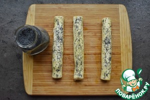 Сверху рулетики смазать оставшимся яичным желтком и присыпать зерновой смесью, у меня это маковое семя. можете использовать кунжут или льняное семя.