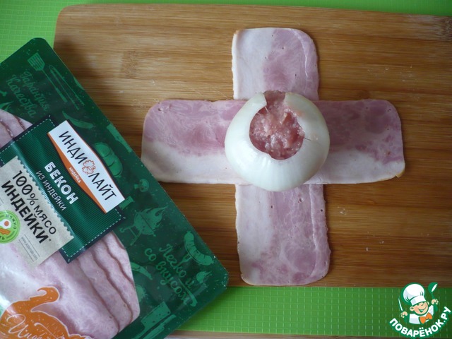 Оберните каждую фрикадельку в луковице двумя ломтиками бекона из индейки ТМ "Индилайт".