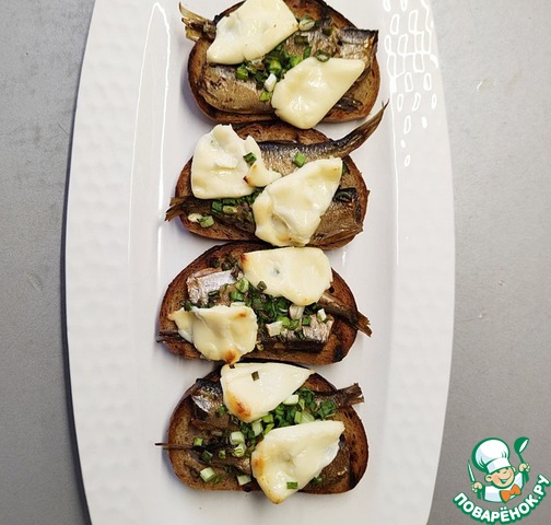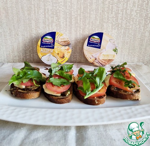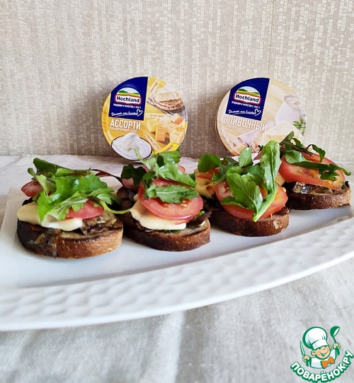 Бутерброд со шпротами Рижский- советская классика. Предлагаю более современный вариант с использованием Треугольников ТМ Hochland Круг сливочный и Ассорти желтое и рукколы.