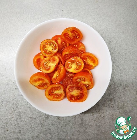 Помидорки заранее разрезать и присолить. Пасту отварить согласно инструкции на пачке. Я указала 135 г. Так я обычно варю на двоих. И пачки хватает на 3 раза. Очень плохо, когда стоят полупустые коробки пасты разных калибров. Не люблю я это. А 135 г нам с мужем вполне хватает. А вы берите столько, сколько съедите.