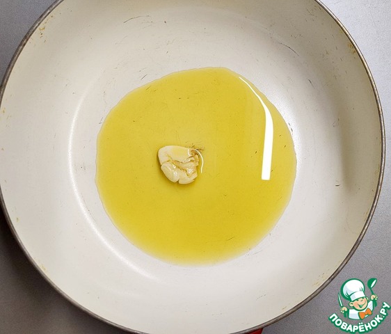 Для этой пасты желательно брать ароматное масло. На масле прогреть зубчик чеснока.
