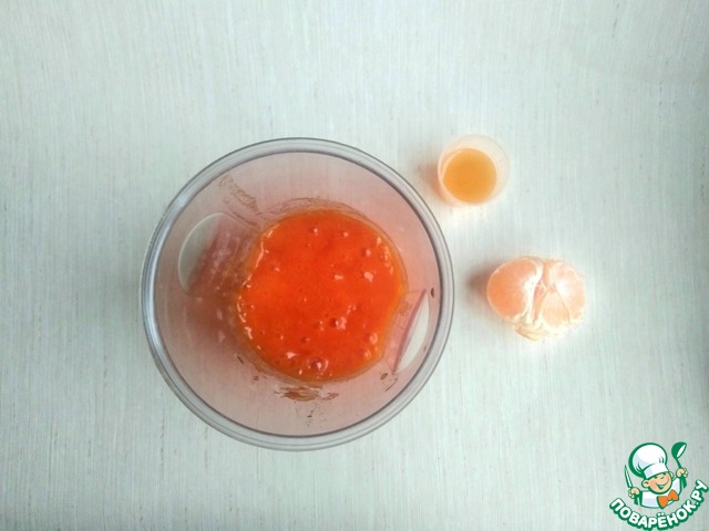Хурму измельчите в блендере. Выжмите сок из двух или трех долек мандарина, добавьте к хурме, перемешайте.