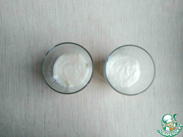 Выложите в стеклянные стаканы по 3 или 4 столовых ложки массы из поленты.