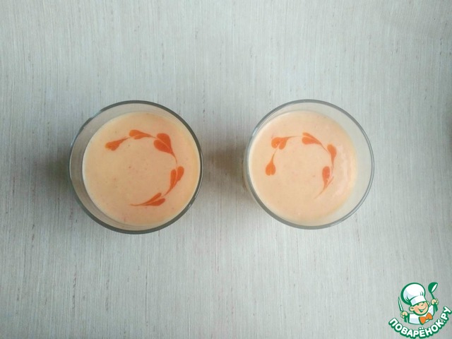 Украсьте десерт пюре из хурмы. Остудите в холодильнике 1-2 часа.