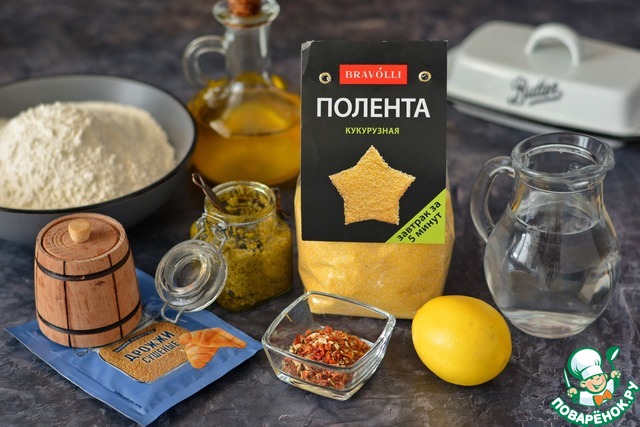 Форму для выпечки смажьте сливочным маслом и присыпьте кукурузной полентой.