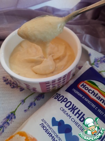 Очень вкусный, нежный десертный крем! Банановый вкус смягчается творожным сыром ТМ Hochland. Этот десертный крем можно использовать и как десерт и как прослойку для тортов