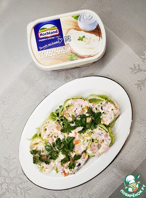 Сейчас сезон пекинской капусты. Последние витамины этого сезона. А рулет из пекинской капусты с плавленым сливочным сыром ТМ Hohcland не только полезен, но и очень вкусный. И начинку можно менять по своему усмотрению. Рекомендую.
