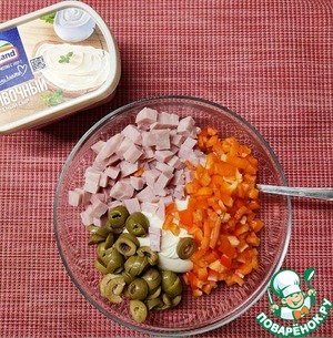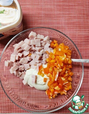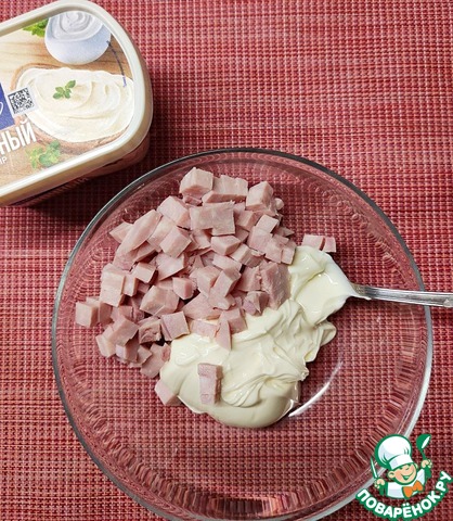 Добавим мелкопорезанную ветчину,
