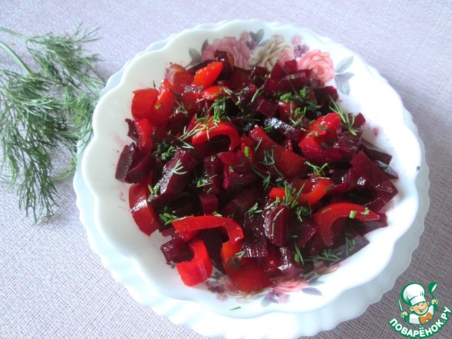 Салат из маринованного красного перца и свеклы - простой и вкусный. Рецепт взят из книги «О вкусной и здоровой пище», где этот салат рекомендован в меню на праздничный стол.