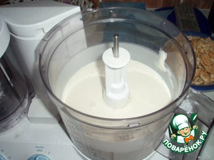 Теперь сметану с сахаром хорошо перемешать (я доверила это дело комбайну) + желатин,