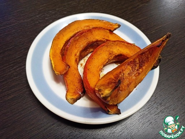 Тыкву нарезать ломтиками. Каждый ломтик посыпать корицей и полить медом. Не сильно, всего в меру. Тыква у меня сладкая и мёд больше для аромата.