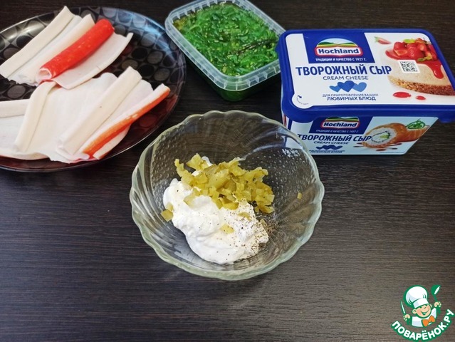 Ингредиенты для «Крабовые рулетики с водорослями вакаме»: