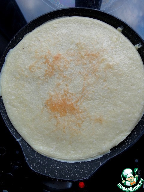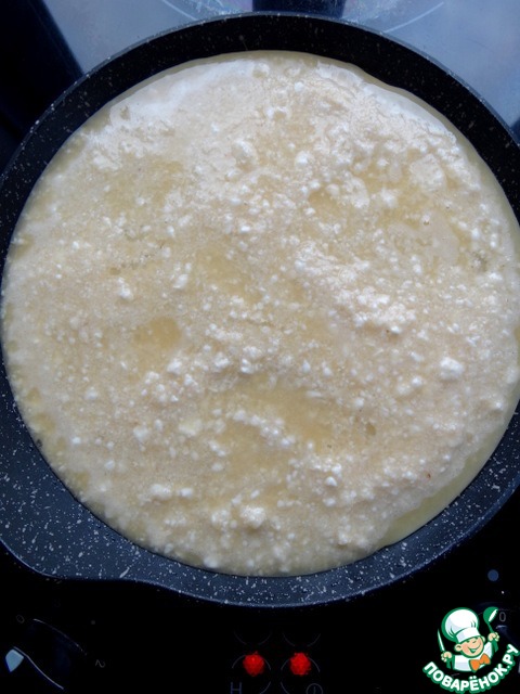 Выложить "тесто" на сковороду, слегка смазанную, маслом. Разровнять.