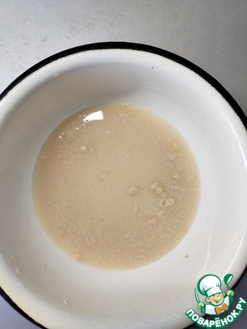 В полстакана воды добавить дрожжи и чайную ложку сахара. Оставить на 15 минут.