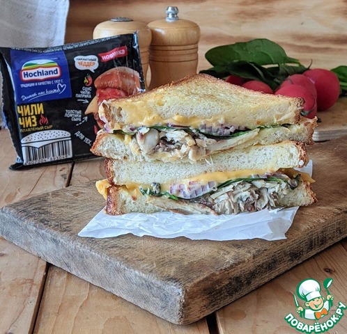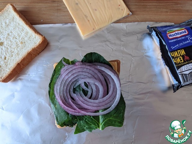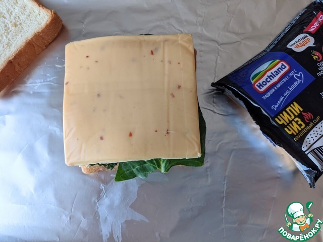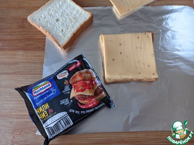 - Сыр плавленый (Сыр плавленый в ломтиках Hochland "Чили чиз") — 4 ломт.