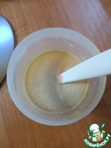 Остальные 200 мл сока немного подогреть и развести в нем дрожжи.