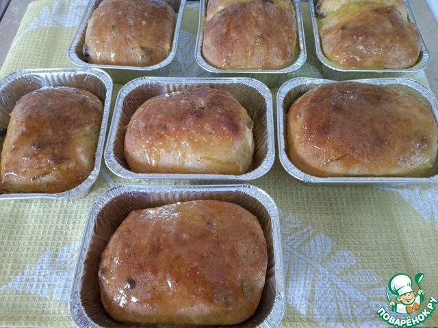 Горячие булочки смажьте сливочным маслом, а можете сделать как я, - приготовить глазурь из сахарной пудры и сока, и еще горячие покрыть глазурью булочки