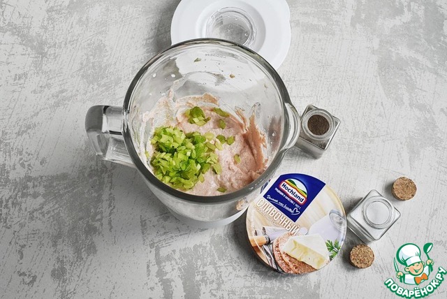 2. Пробить в пульсовом режиме до гладкости. Добавить нашинкованный зеленый лук и еще пару раз вжикнуть для объединения.