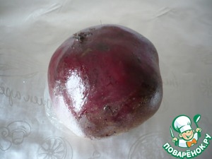 Разогрейте духовку до 180 градусов, положите свеклу на лист фольги, смажьте растительным маслом и заверните. Запекайте, пока она не будет легко прокалываться ножом, 60-70 минут. Дайте свекле остыть, а затем очистите и нарежьте ее.