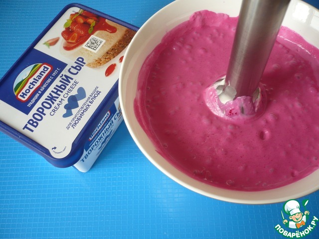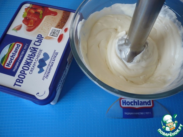 Взбейте блендером творожный сыр ТМ "Хохланд" со сливками до получения однородной массы.