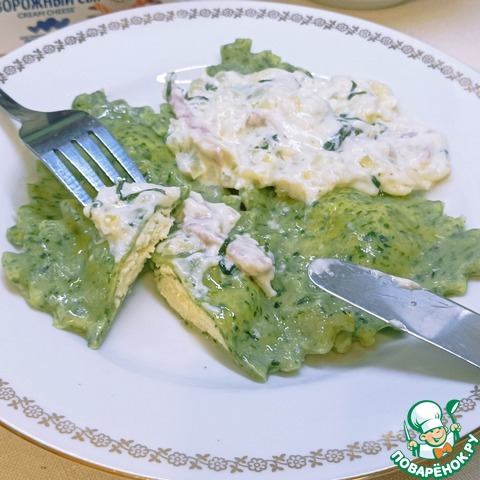 Рецепт «Зеленые равиоли с чесночным соусом»: