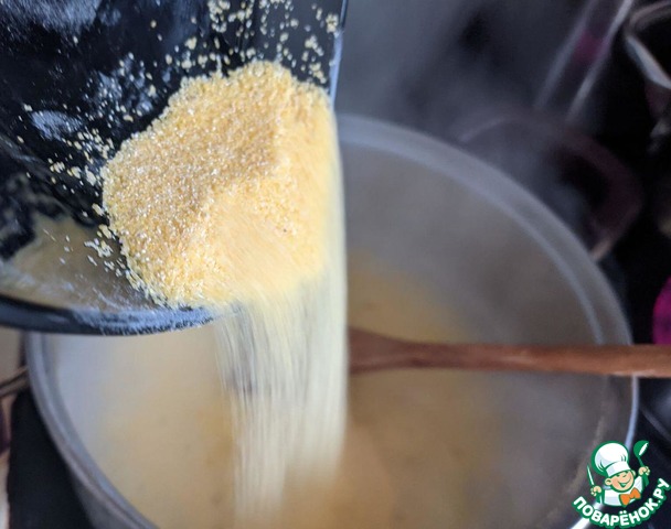 Заранее варим кукурузную поленту. Время стабилизации поленты не учитывала.