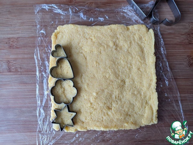 Пока фарш "отдыхает", берём поленту. Можно просто порезать её на кусочки. Но я предлагаю сделать из неё фигурки вырубками для печенья. Эта полента очень хороша в работе. Фигурки получаются без проблем.