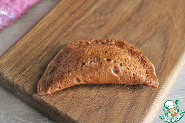 Печь блинчик только с одной стороны до румяности, а с лицевой стороны блинчик должен быть пузырчатым и не влажным.
