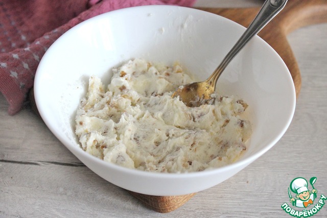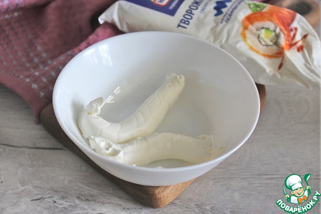 Приготовить начинку. Для этого в чашку выложить необходимое количество творожного сыра ТМ Hochland.