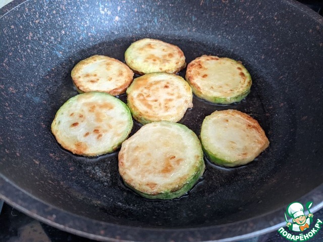 Обжариваем цуккини в масле на среднем огне с двух сторон до золотистости.