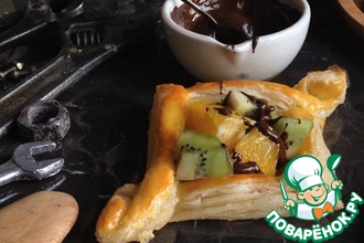 Поливаем шоколадным соусом. Для украшения можно положить рядом шарик шоколадного мороженого.