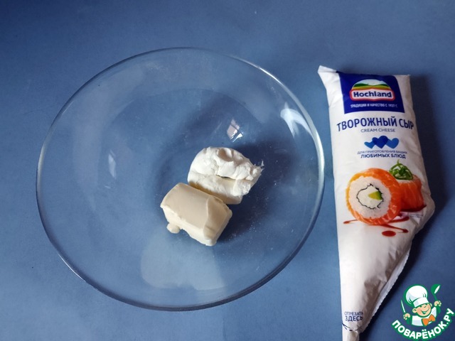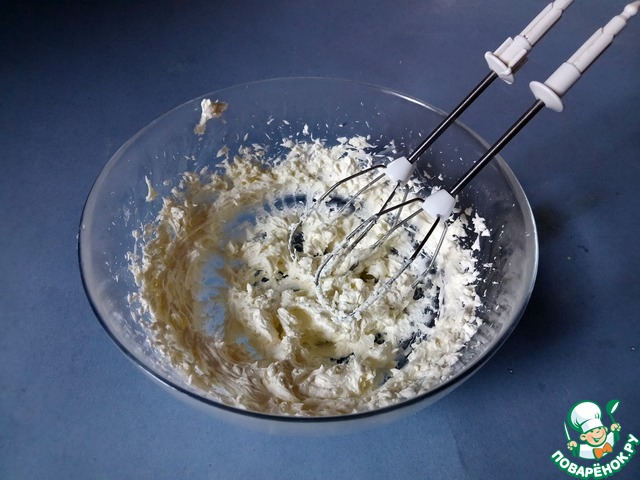 К творожному сыру добавить сливочное масло комнатной температуры.