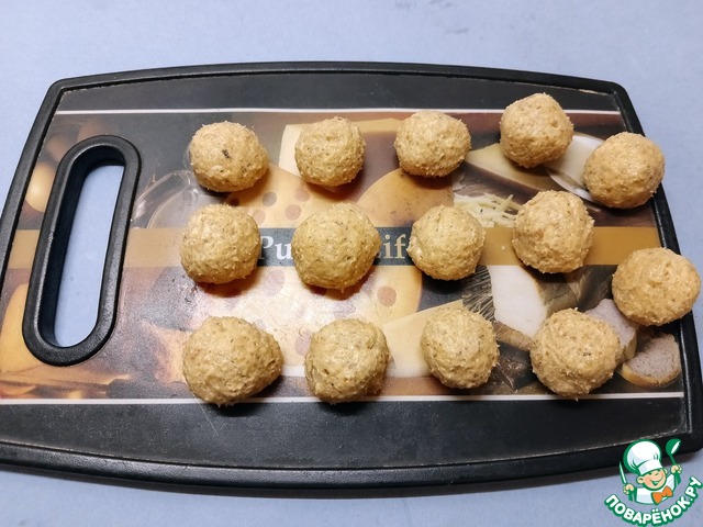 Разделить на 14 равных частей. Поставить в холодильник на 1,5 часа. Скатать в шарики. Охлажденное тесто легче катается в шарики.