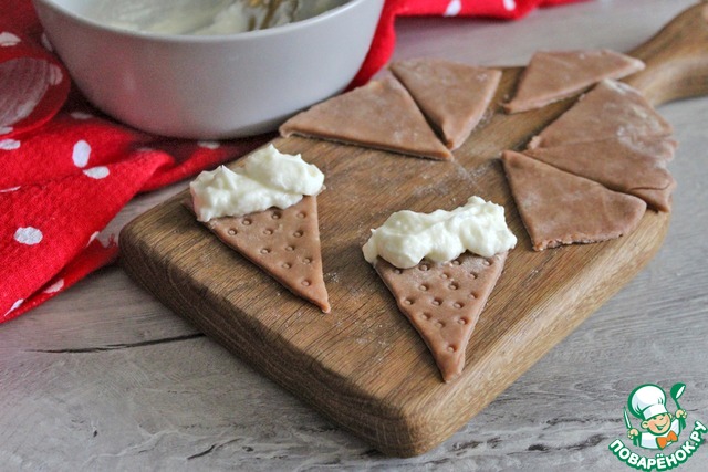 Наполнить «рожок» порцией приготовленной начинки из творожного сыра – «мороженого».
