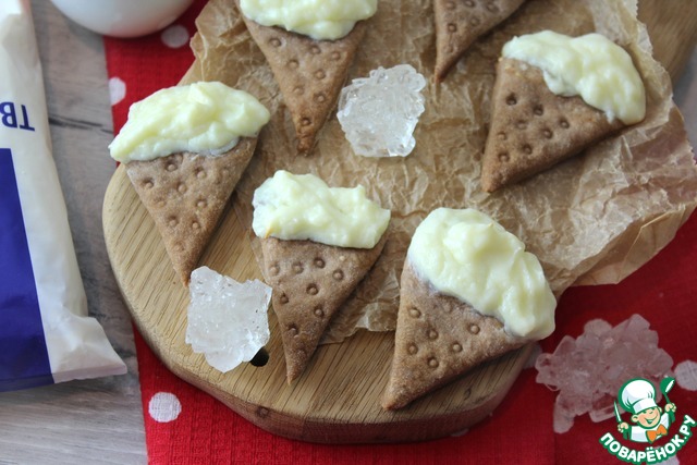 Хотите мороженого?! Сколько вам порций? Берите больше! От такого мороженого вы точно не заболеете ангиной! Оно очень вкусное! Рассыпчатый «рожок» из песочного теста со сладким «мороженым» из творожного сыра, нежным и воздушным.