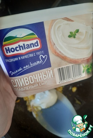 Добавляем плавленный сливочный сыр ТМ Hochland и все тщательно перемешиваем.