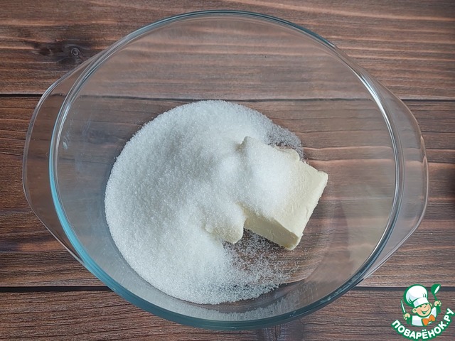 Размягченное сливочное масло соединить с сахаром, перемешать венчиком или лопаткой, как вам удобно.