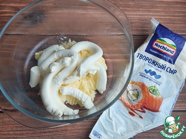 Добавить творожный сыр, перемешать.