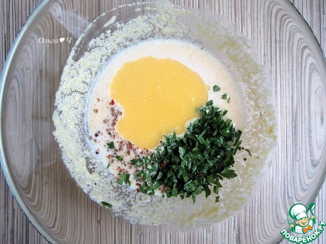 Смешайте поленту, йогурт и яйцо.