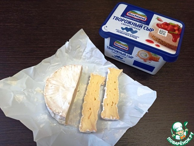 У меня сыр с белой плесенью (можно с голубой) и творожный сливочный сыр Hochland.