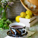 У чая приятный насыщенный яблочно-мятный вкус с цитрусовыми нотками.