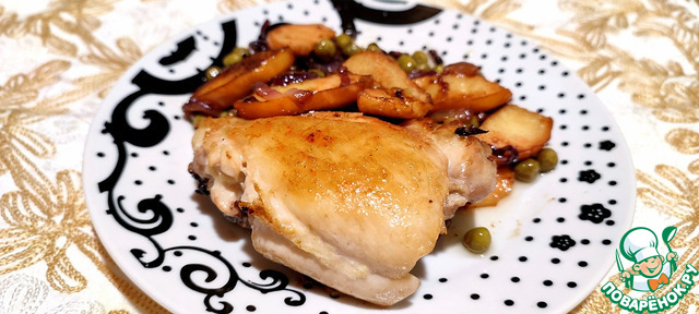 Ароматная курочка с кисло-сладкой айвой и зеленым горошком - отличный вариант для душевного ужина в кругу семьи. Попробуйте!