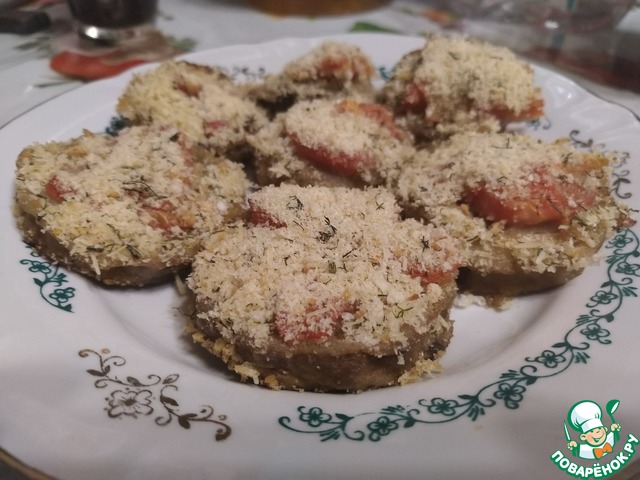 Простая, но эффектная закуска из баклажанов под хрустящей сырной корочкой. Попробуйте!
