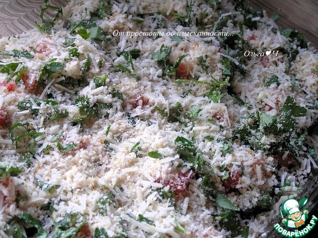 Сыр натрите на терке, смешайте с рубленной петрушкой и сухарной крошкой.