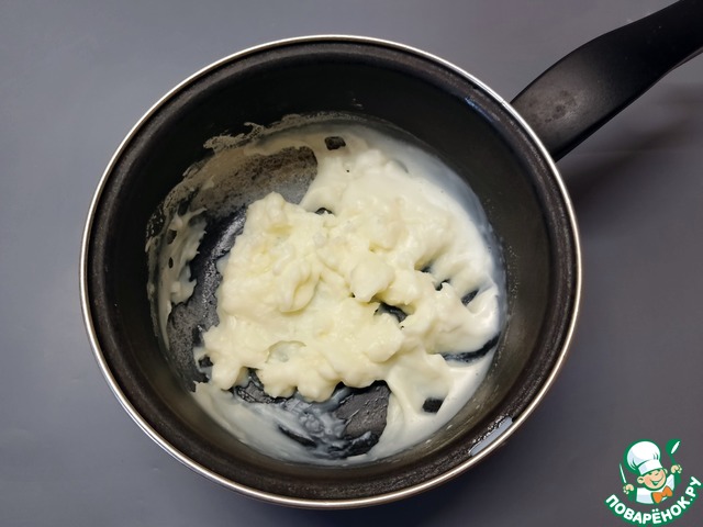 Выложить к творожному сыру и молочной массе.