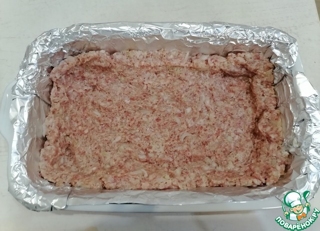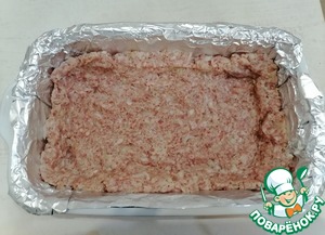 Форму застелить фольгой и смазать подсолнечным маслом. Из фарша сформировать корзинку
